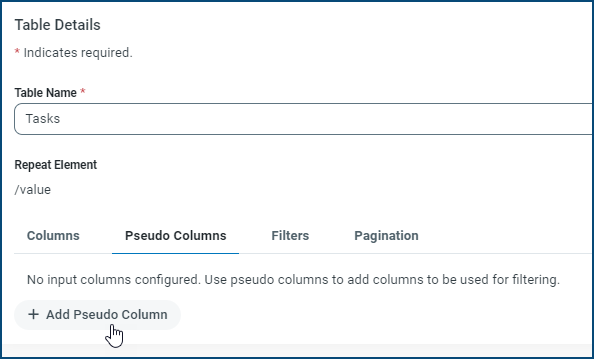 After you successfully create your connection, you can add tables, pseudocolumns, filters, and pagination, as described in these sections: