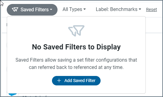 In addition, you can filter the connections table by connection type and label. After you set filters, you can clear all filter options by clicking Reset. Sync also enables you to save filters that you define so that you can use them later.