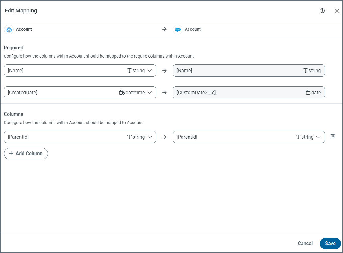 Click Save to save your changes and return to the Column Mapping page.