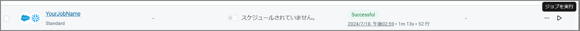 以下に示すように、ジョブ行の最後にカーソルを置いたときに表示されるジョブを実行 (▷) をクリックする。