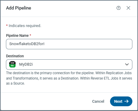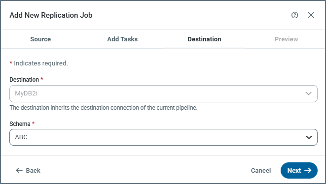 Note: You can cancel pipeline creation at any time by clicking Cancel on any step in the Add New Replication Job dialog box.