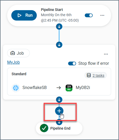 Pipeline End node: This node indicates the completion of the pipeline workflow and marks the point at which execution stops after the final step runs.