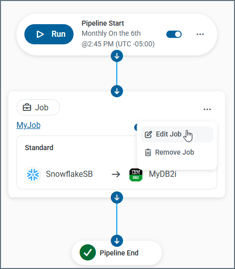 Select the action that you want to perform for the step. In the following example, which shows a replication job step, you can select Edit Job or Remove Job.