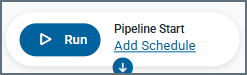 An Add Schedule link is displayed if no schedule is configured. Clicking the link opens the Add Schedule dialog box, where you can define a run interval. After you configure a schedule, that information appears in the Pipeline Start node. You can edit or remove the schedule by clicking the options menu (…) and selecting the appropriate option.