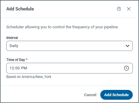 Select the run interval that you want for your pipeline. Then, click Add Schedule.