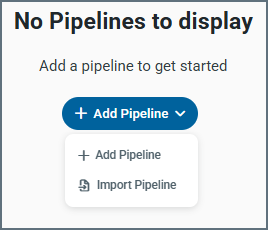 To create your first pipeline, click Add Pipeline and select Add Pipeline from the drop-down menu, as shown below. For detailed instructions about creating a pipeline, see Adding a New Pipeline.