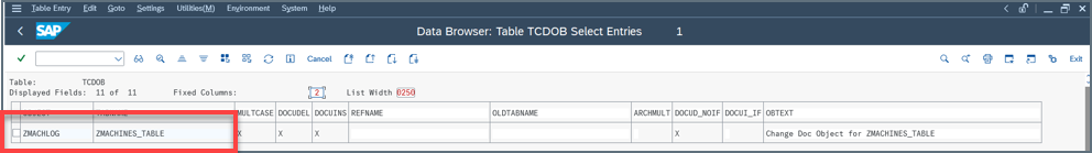 On the Data Browser - Table TCDOB page, filter by entering ZMACHINES_TABLE in the TABNAME text box.
