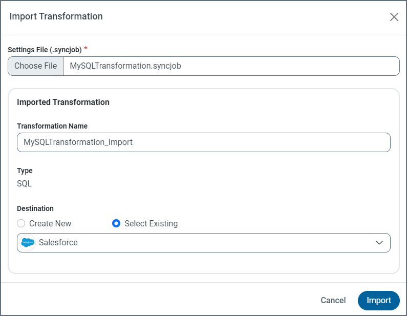 Sync では、SQL Transformation のみインポート可能です。マシンから変換テーブルにこれらの変換をインポートすることができます。