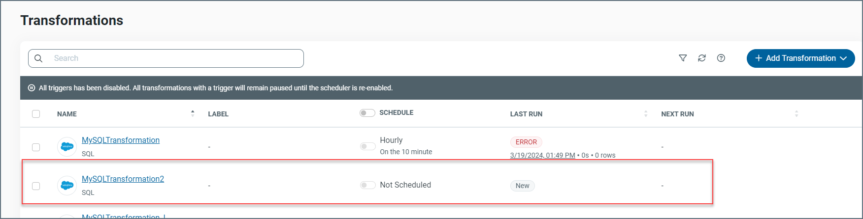 変換を作成後、設定や構成オプションを編集したい場合があります。これらの設定と構成の編集に関する詳細は、SQL Transformation 設定の指定およびDBT Transformation 設定の指定を参照してください。
