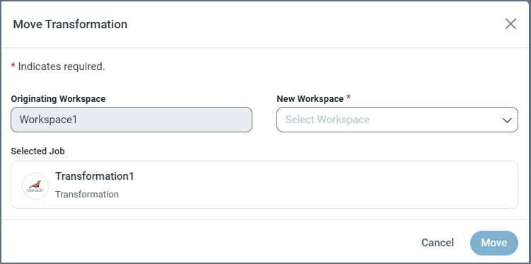 移動をクリックして、変換を新しいワークスペースに移動します。