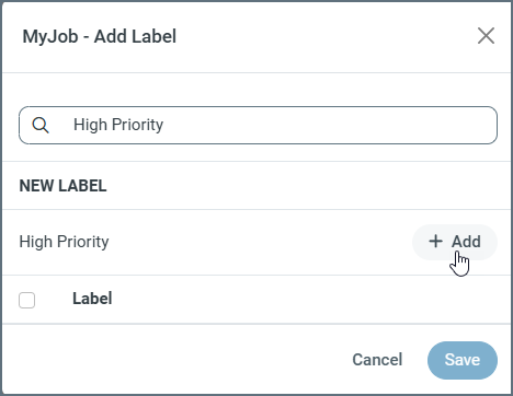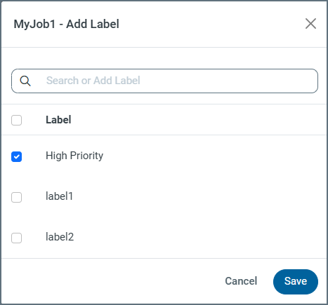 Select … > Add Labels from the end of the row for the job for which you want to add a label. This selection opens the JobName - Add Label dialog box.