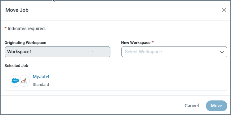 Click Move to transport your job to the new workspace.