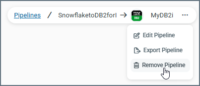 From the Pipeline editor, click the options menu (…) in the upper left corner of the page and select Remove Pipeline.