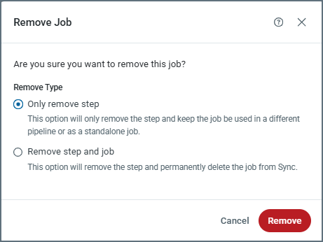 Remove step and component: This option removes the step and permanently removes the underlying component from Sync.