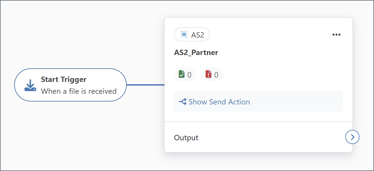 If the AS2 connector is not connected to another connector in the flow, the files received by the AS2 connector remain in the Receive folder. These files can be viewed on the Output tab of the connector.