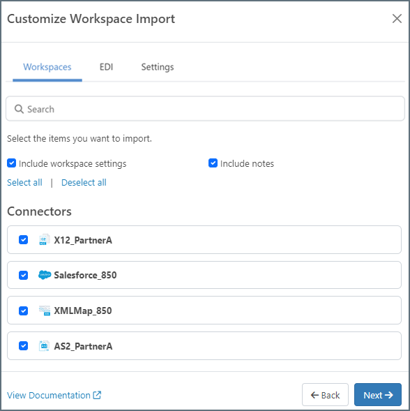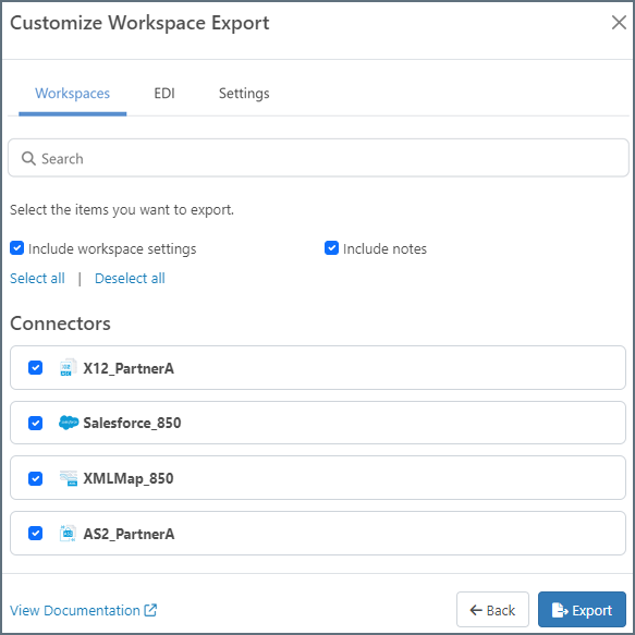 ワークスペース内の複数のコネクタをエクスポートするには: