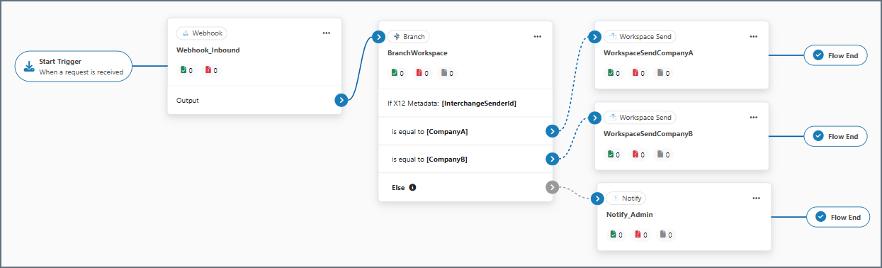 - When a document is received from CompanyB, the next step in the flow sends it to the CompanyB workspace.