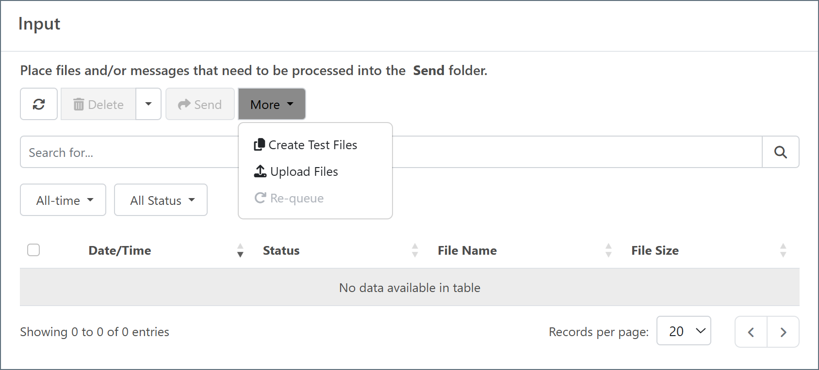 You can also use the Input tab to upload files into the Send folder, as shown in the following image: