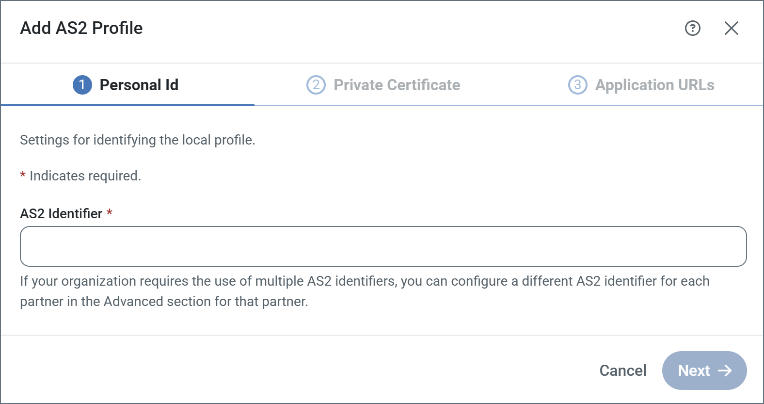 Your AS2 identifier is included in outgoing AS2 messages and identifies you as the sender. Additionally, incoming AS2 messages must be addressed to this identifier to be accepted by the application. AS2 identifiers have some restrictions: for example, they cannot include whitespace characters and they are case-sensitive. Other than those (and any restrictions imposed by your trading partners), AS2 identifiers can be any mutually agreed upon value.