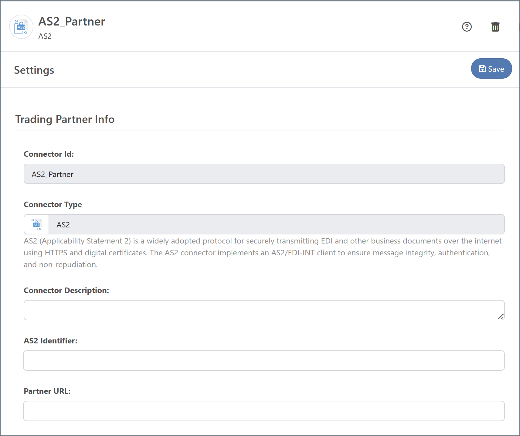 - Receiving URL (the endpoint where partners should send AS2 messages)