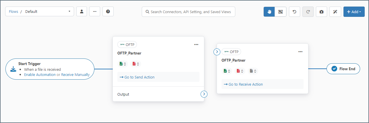 In most workflows, files are processed by other Arc connectors before they are sent out by the OFTP connector. When another connector is connected to the OFTP connector in a flow, files are automatically passed into the OFTP connector’s Send folder.