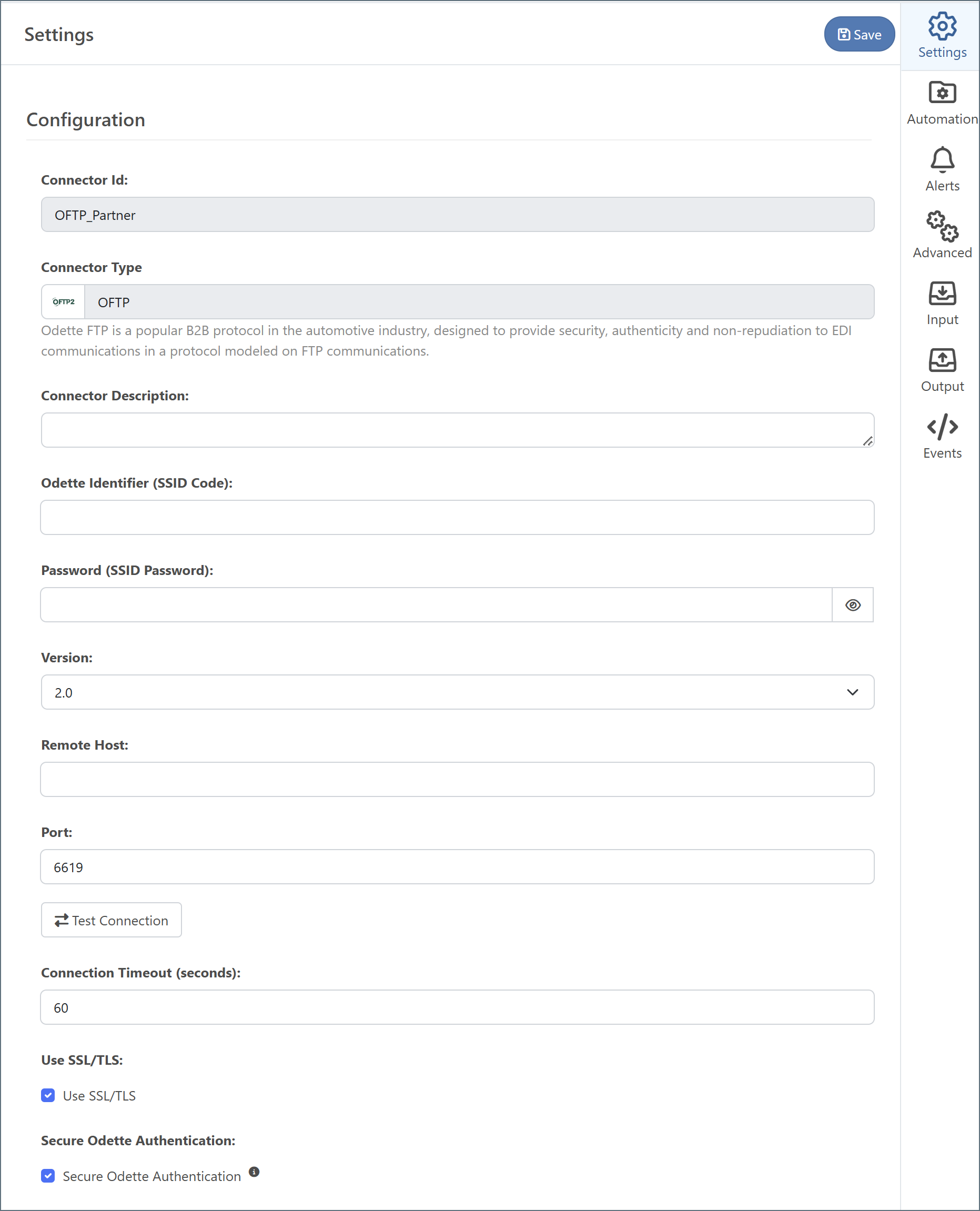 - Odette Identifier (the value provided by Odette that identifies you as an OFTP entity)