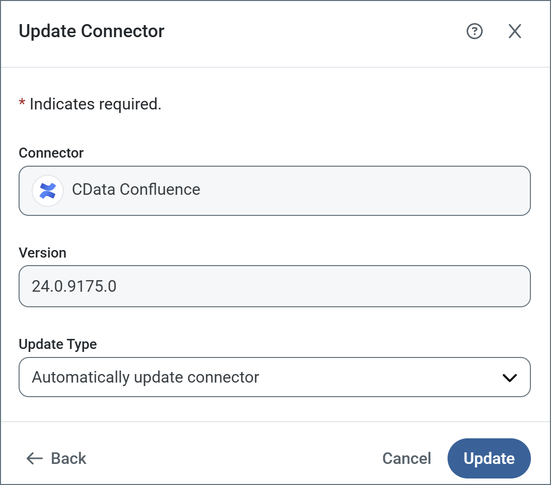 When you edit an existing connection, update the driver using the Update button. Once clicked, the Update Connector pane opens with the same set of update options described above.