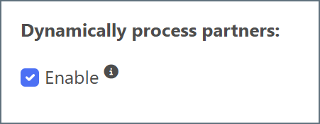 By default, the Dynamically process partners checkbox on the connector Settings tab is enabled. This means that the connector automatically identifies and tracks trading partner relationships from EDI transactions. In this case, no manual partner configuration is required because the connector dynamically manages all partners up to your license limit, and notifies you when you reach the limit. The connector keeps track of the identifiers based on the files that it processes, which means that you might be able to use a single connector for all of your partners.