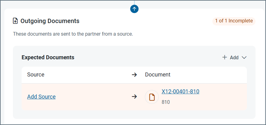 The following images show configuring a source for an outgoing document, but the same principles apply for incoming document destinations. In this example, the source is being defined from a partner’s Workflow tab, but you can achieve the same result from the Documents tab.