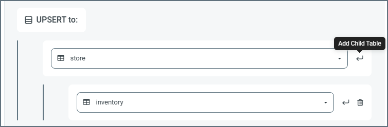 - To add more tables to the mapping, click the link to the first table, then click the Add Child Table arrow and select the next table.