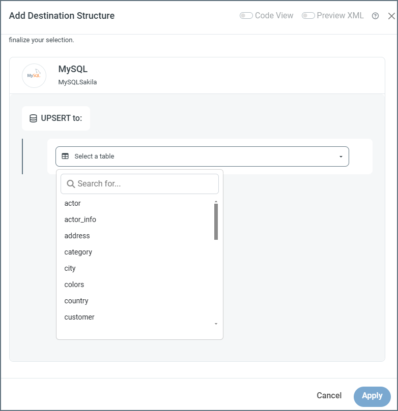 - Select a table from the dropdown.