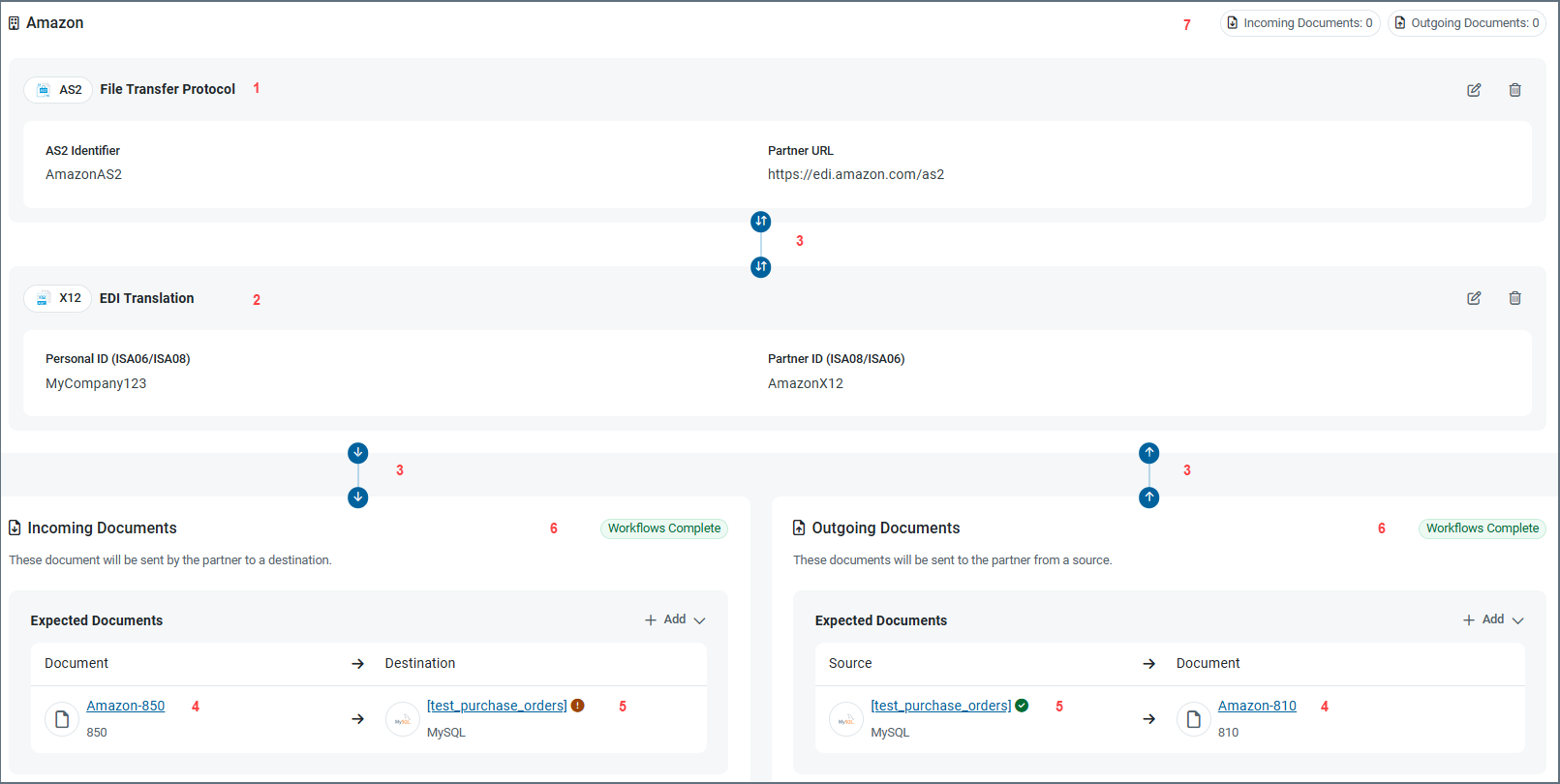 - The defined document that you exchange with your partner. Clicking the document name takes you to that document’s workflow in the Documents tab.