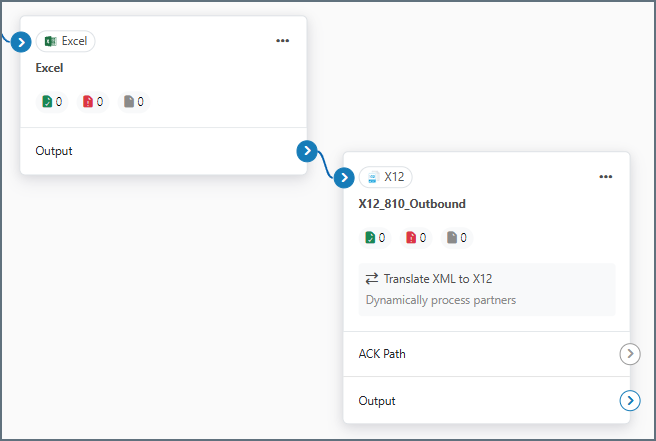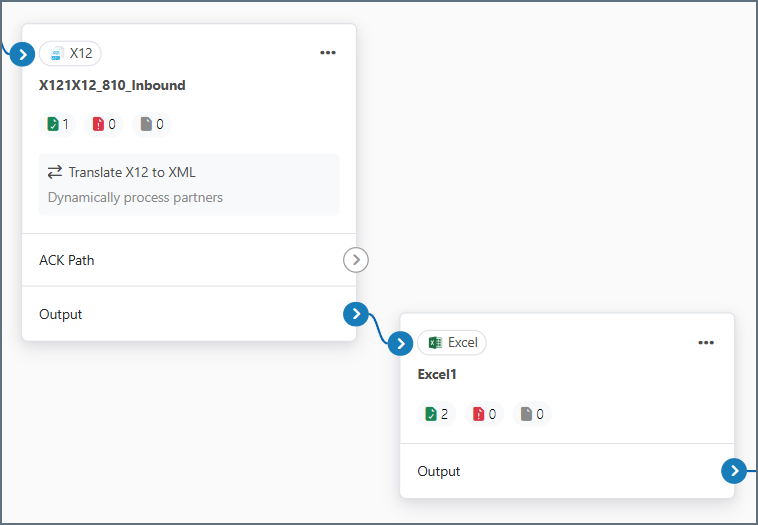 Next, connect the X12 connector to an Excel connector so that the XML files are passed along to the Excel connector.