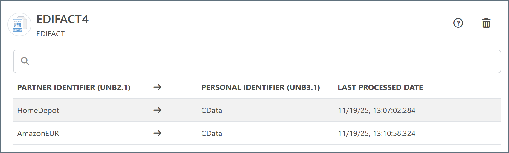 - Dynamically process partners When enabled, the connector automatically identifies and tracks trading partner relationships from EDI transactions. When disabled, you must manually define the partner relationship. See Defining Trading Partner Relationships for more information.