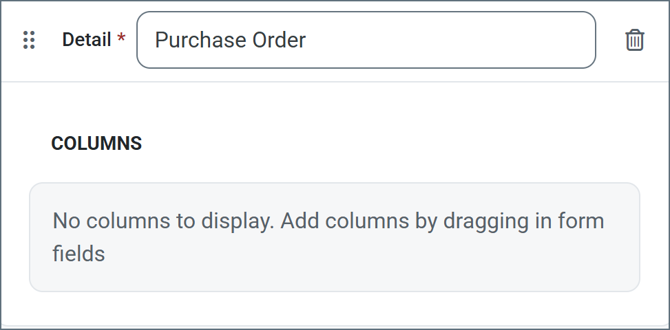 - Drag and drop fields in a section or detail table to reorder their position in the form.