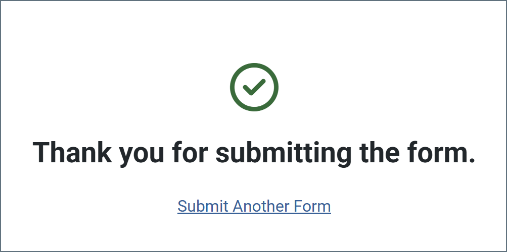- Success Message The confirmation message users see after they submit form data successfully. You can change the default message or add additional text.