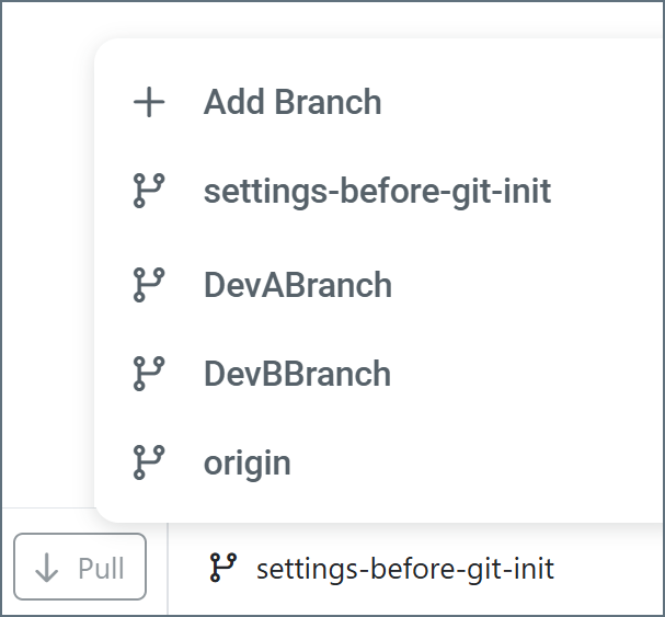 To create a new branch, click the branch icon on the toolbar (you can also switch between branches here).