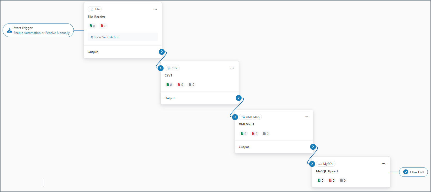 Data in this example flow passes through these steps: