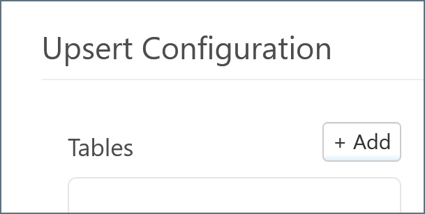 If you choose Upsert for the Oracle connector, you must select a target table (or tables) from Oracle. Click the Add button above the Tables pane.