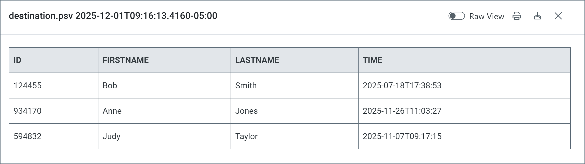 The preview format shows the data in an easy-to-read layout. Use the Raw View toggle in the top right corner to view the unformatted document.