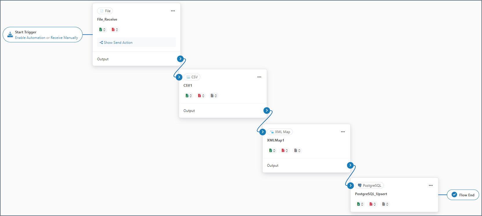 Data in this example flow passes through these steps: