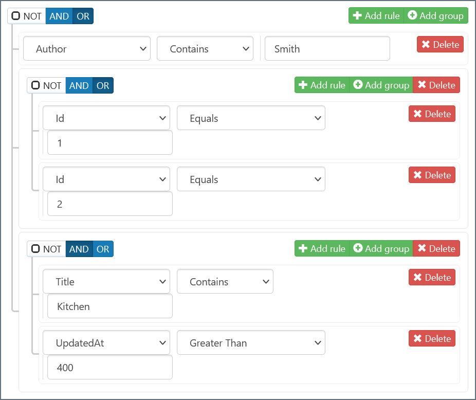 - If you select AND, every filter rule in the group must be true for the filter conditions to be met.