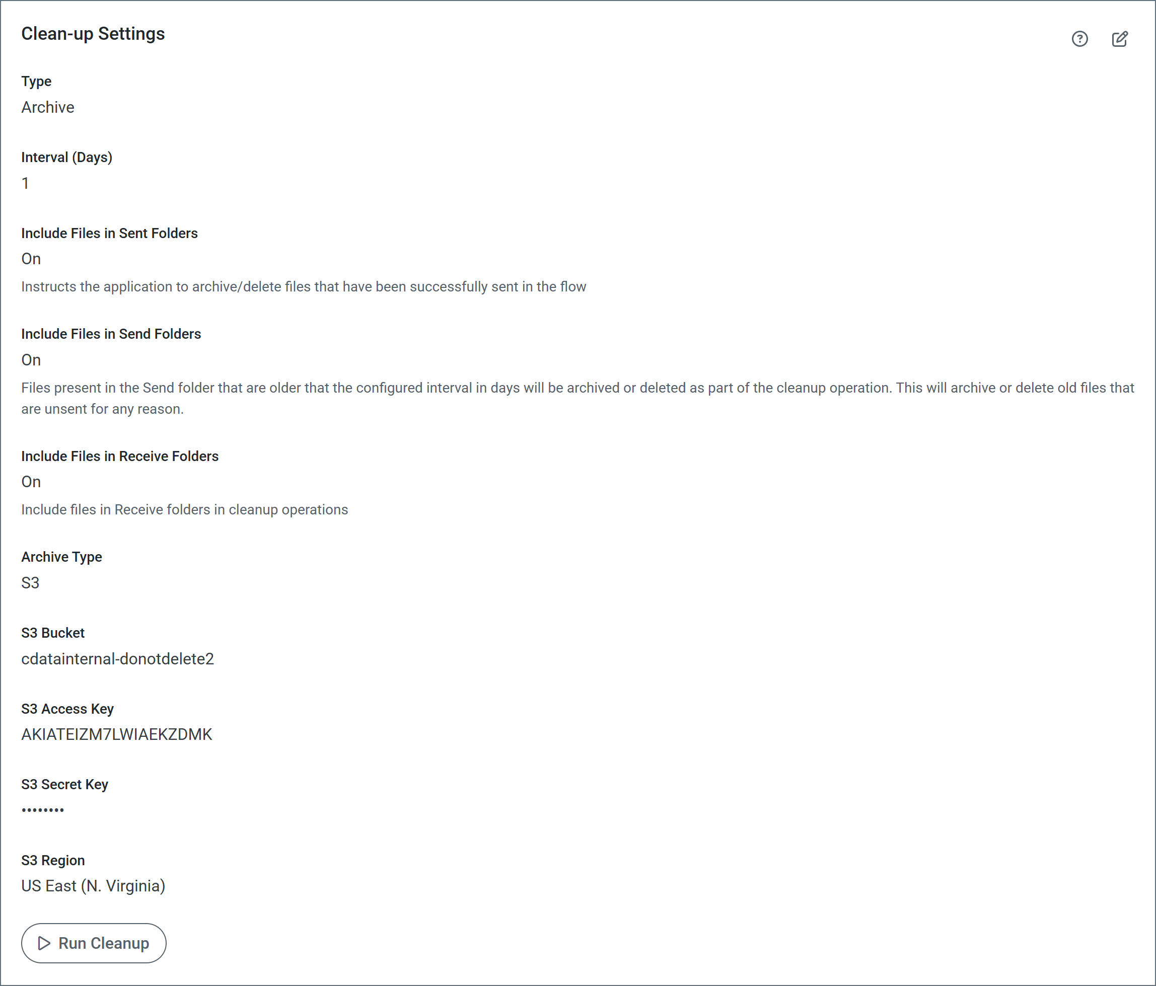Cleanup Settings