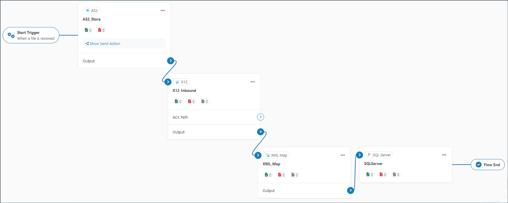 Depending on your requirements, you might not need all of the connectors to create your B2B flow. To omit any of the connectors shown above, simply proceed to the next connector in your flow and connect it as necessary. If you make a mistake, it is simple to add or remove connectors from the flow.