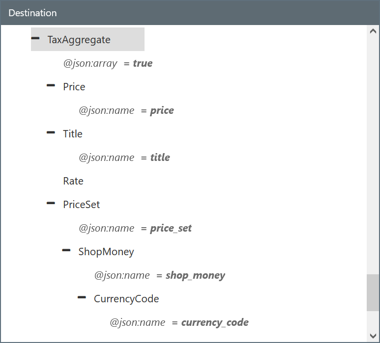 In an XML Map connector, the full structure of the aggregate column expands to display all of its contents. The following screenshot shows an aggregate column expanded: