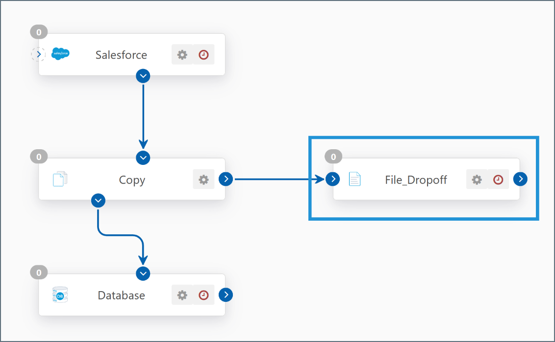 To drop off processed files to the local file system, add a File connector to the end of your flow as shown below: