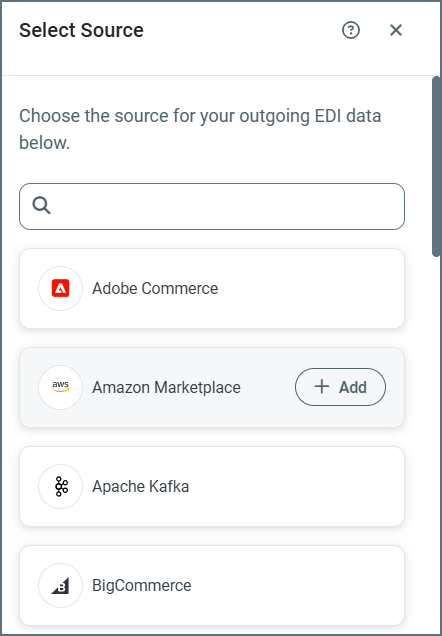 - Add opens a new list of nodes that you can create and use in your mappings. (Only available for incoming document mappings.) The options are: