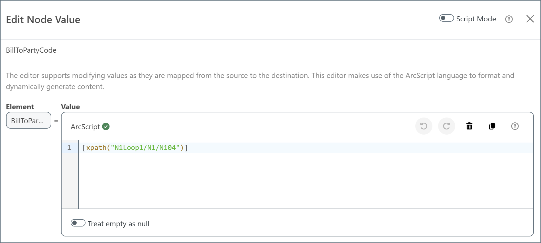 Then, hover over the mapped BillToPartyCode element and click the tablet and pencil icon to open the Node Value editor: