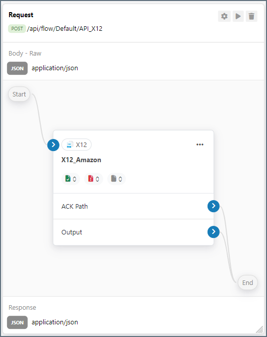The X12 connector translates the X12 file to XML and passes the translated XML file to the JSON connector.