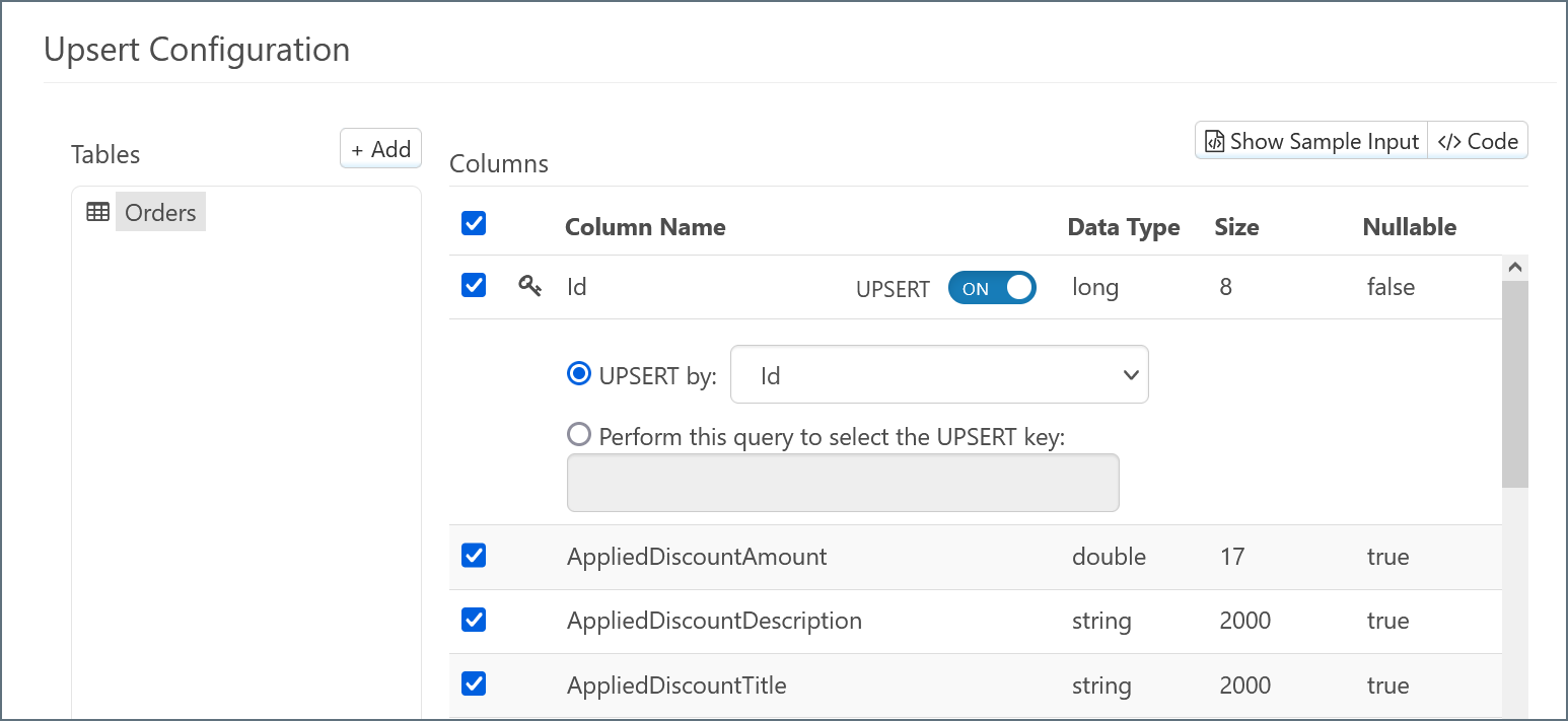 MySQL Upsert Configuration